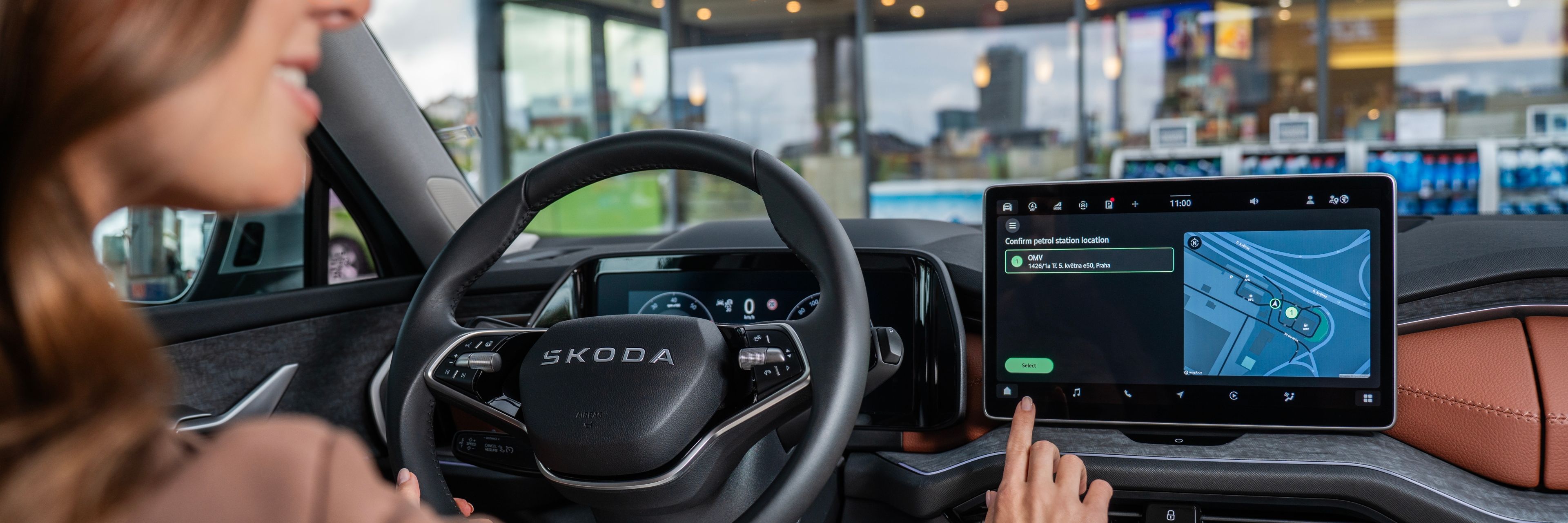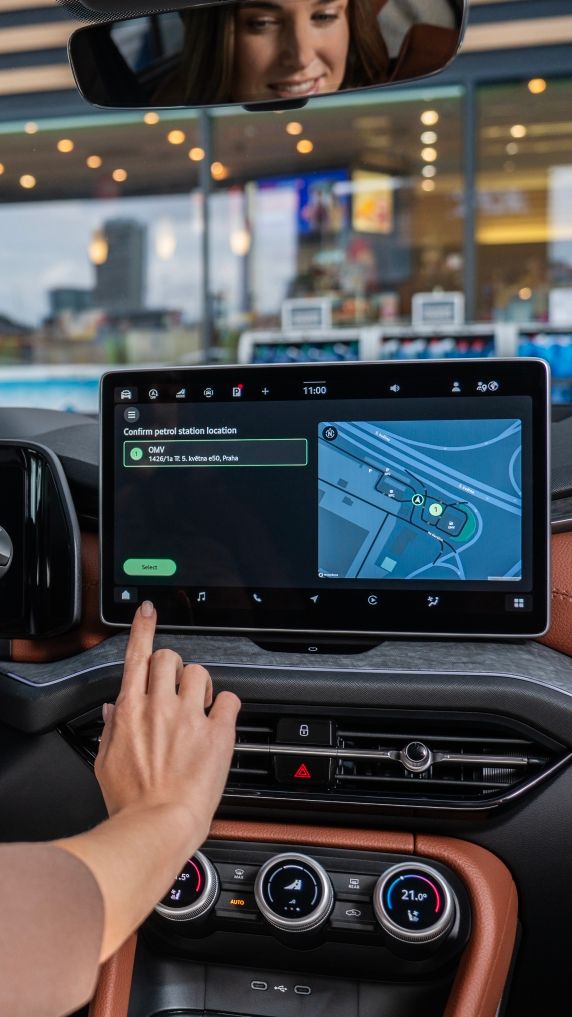 Bezahlen Sie bequem direkt über das Infotainment-System Ihres Škoda Fahrzeugs und sparen Sie so bei jedem Tankvorgang Zeit.